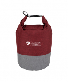 Keeps your items dry and comes in a chic two-tone design. It has a roll top closure with a buckle to connect to other bags and a carabiner clip to connect to a backpack or tether to a raft rope. Made from heathered 300D polyester, it has a 5 liter capacity and can float if dropped in water. Complies with Prop 65. 7" W x 13" H x 7" D